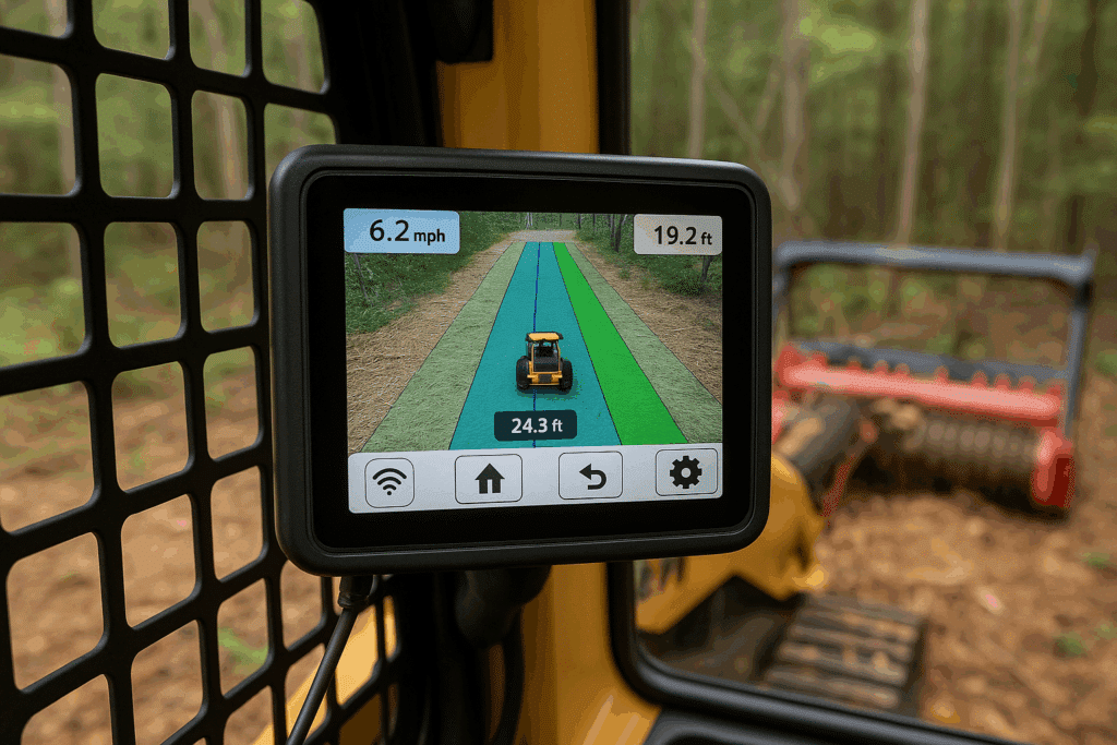 Modern forestry mulching equipment can be fitted with specialized GPS receivers and onboard computers that process location data in real-time. These systems include: